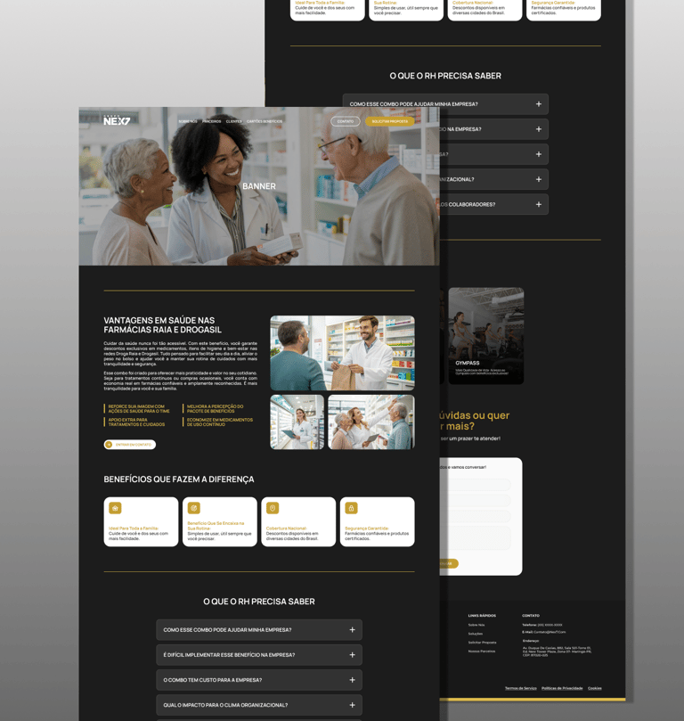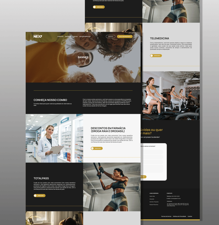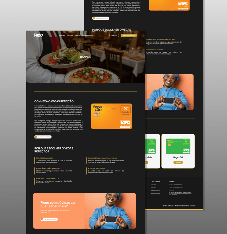 Desenvolvi o design e o front-end do site da Nex7 – Vegas Benefícios, uma empresa de Maringá (PR) especializada em soluções corporativas. A plataforma foi pensada para refletir os valores da marca: tecnologia, bem-estar e atendimento humanizado. O site oferece uma experiência clara e funcional para empresas que buscam cartões e programas de benefícios com foco em saúde, economia e qualidade de vida. Todo o visual e a navegação foram criados para destacar a proposta da Nex7: proximidade, segurança e suporte personalizado.